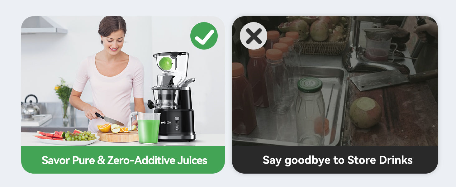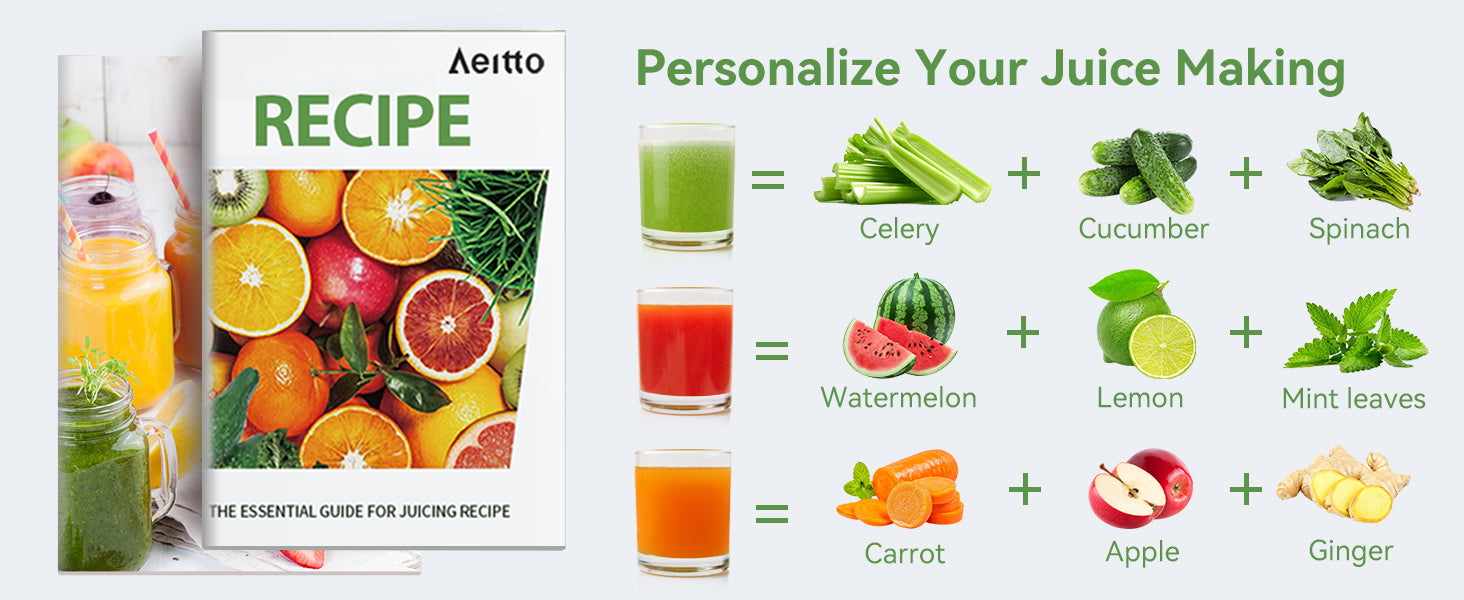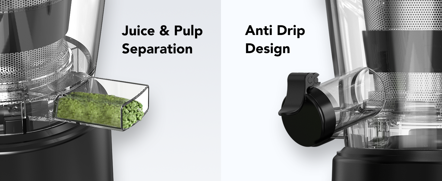 - Juice & Pulp Separation Function - The Aeitto Juicer Machines perfectly separates the pomace from the juice, and extracts the nutrients with less oxidation. 900ml juicer cup & pulp cup can serve your daily demand. Now you can enjoy the purest juice from apple, ginger, celery, carrot, kale , vegetables and more!