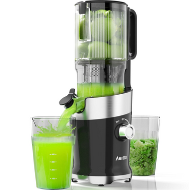 Aeitto Juicer Machines, 4.9" Extra Large Feed Chute for Whole Fruits and Vegetables, Cold Press Juicer, Slow Masticating Juicer Easy to Clean, Double Strainers, Self Feeding, High Juice Yield