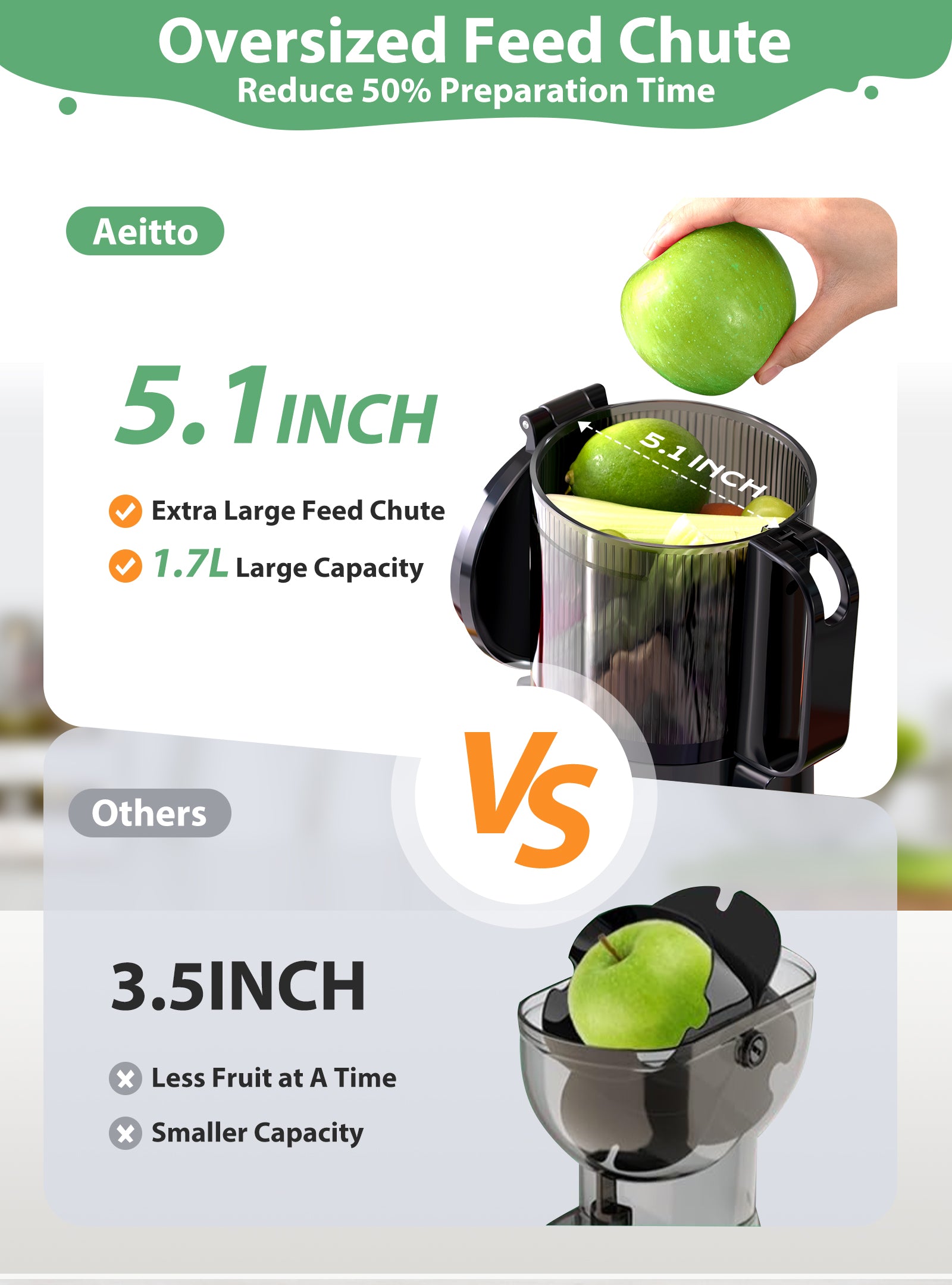 Aeitto Masticating Juicer with 5.3" Large Feed Chute