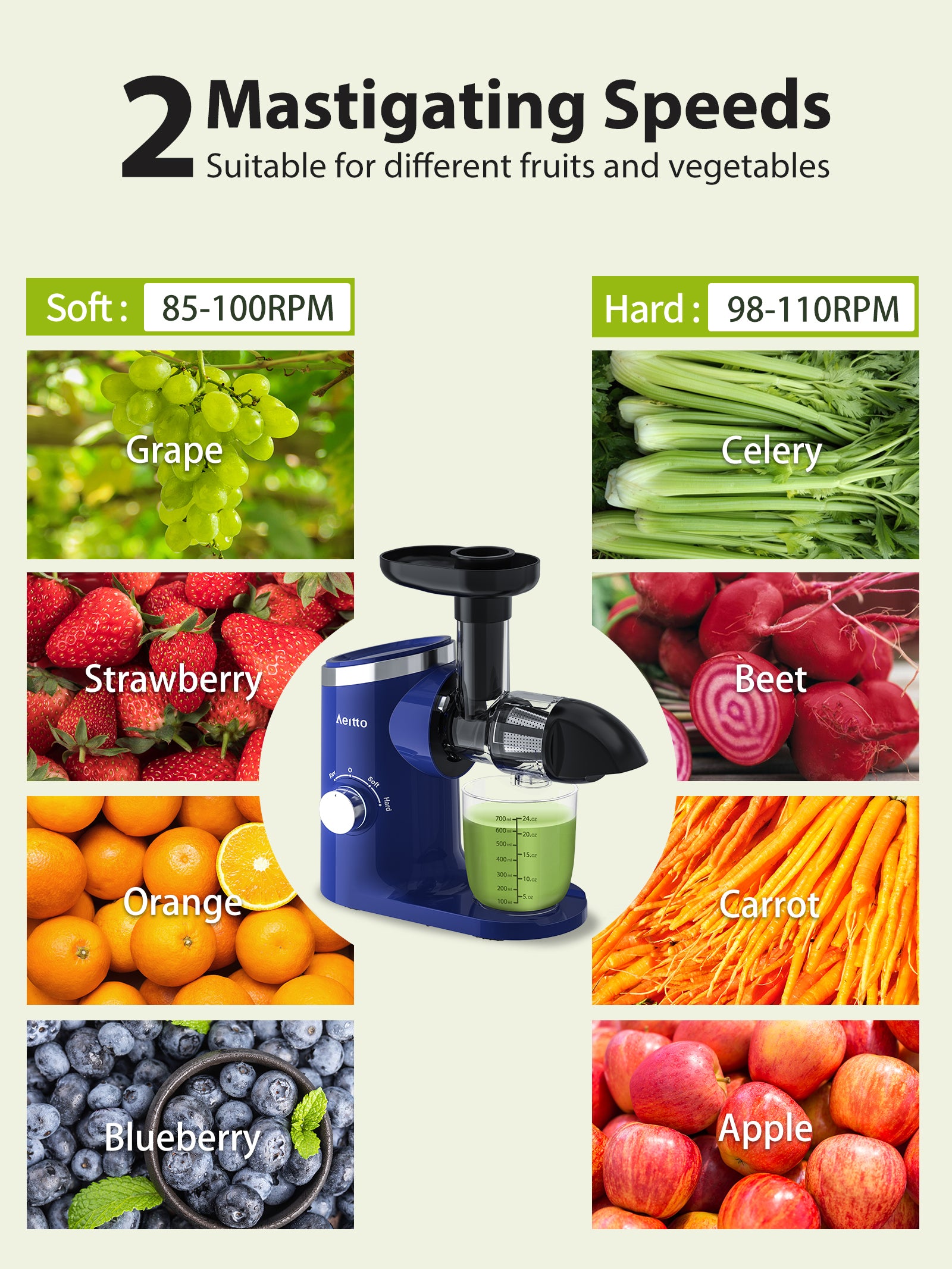 Aeitto Masticating Juicer with Two Speed Modes BLUE