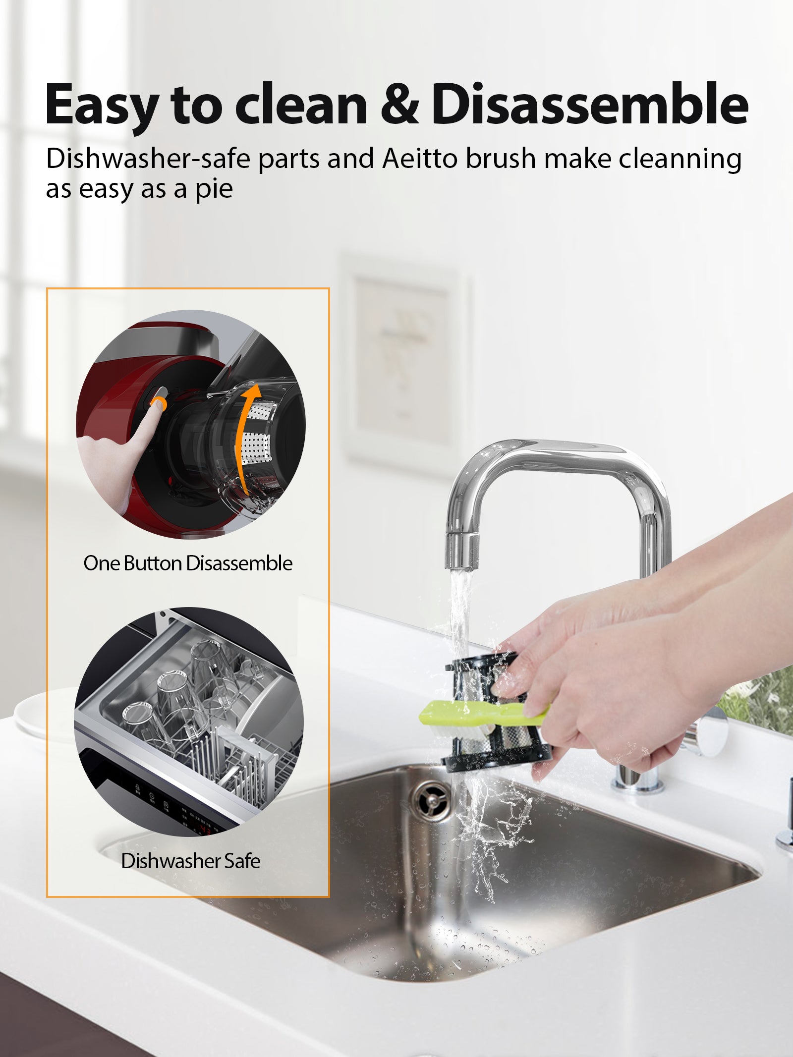 - đăEasy to Disassemble & Cleană-The one-button disassembly design eliminates the trouble of complicated disassembly.And It is equipped with a cleaning brush to make the juicers cleaner easier.The parts are dishwasher safe.