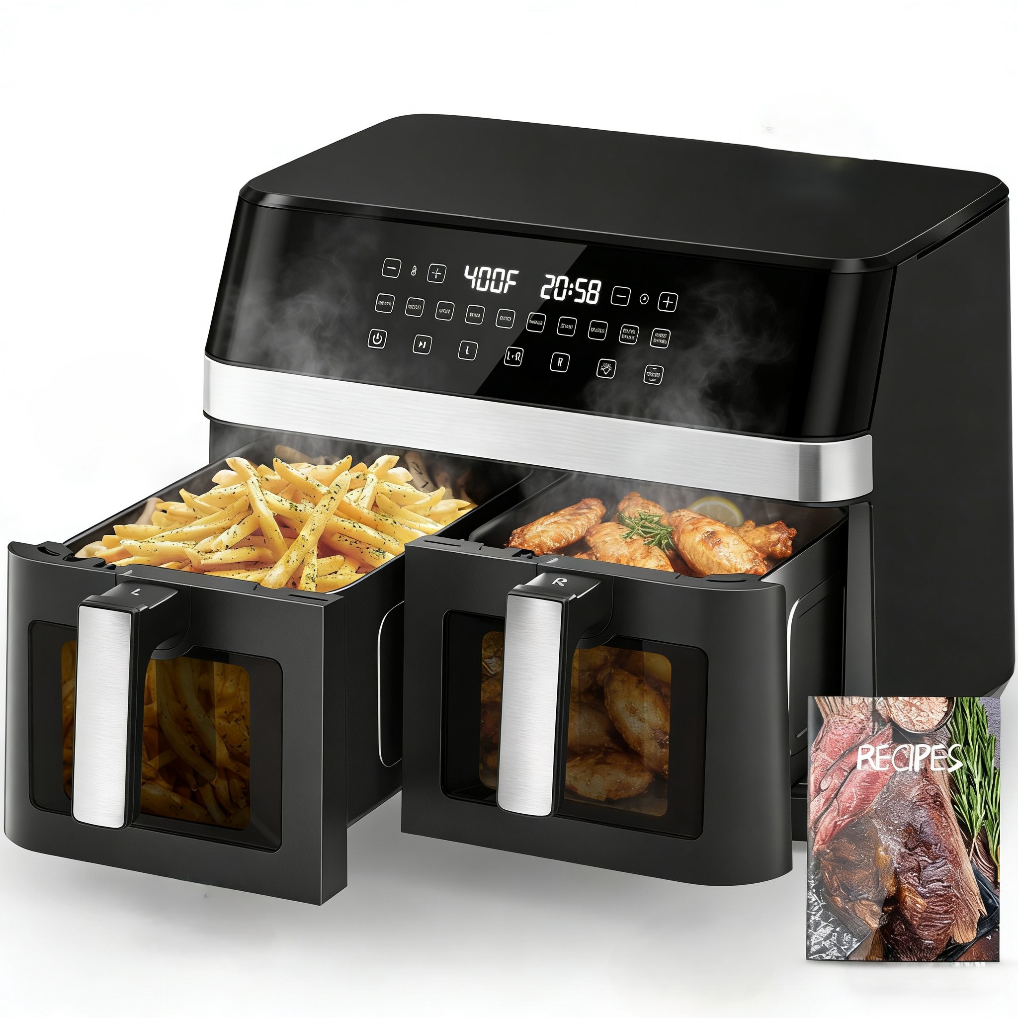 Dual Air Fryer 10-in-1, Fresh Balanced Meals for Family and Children with Double Baskets